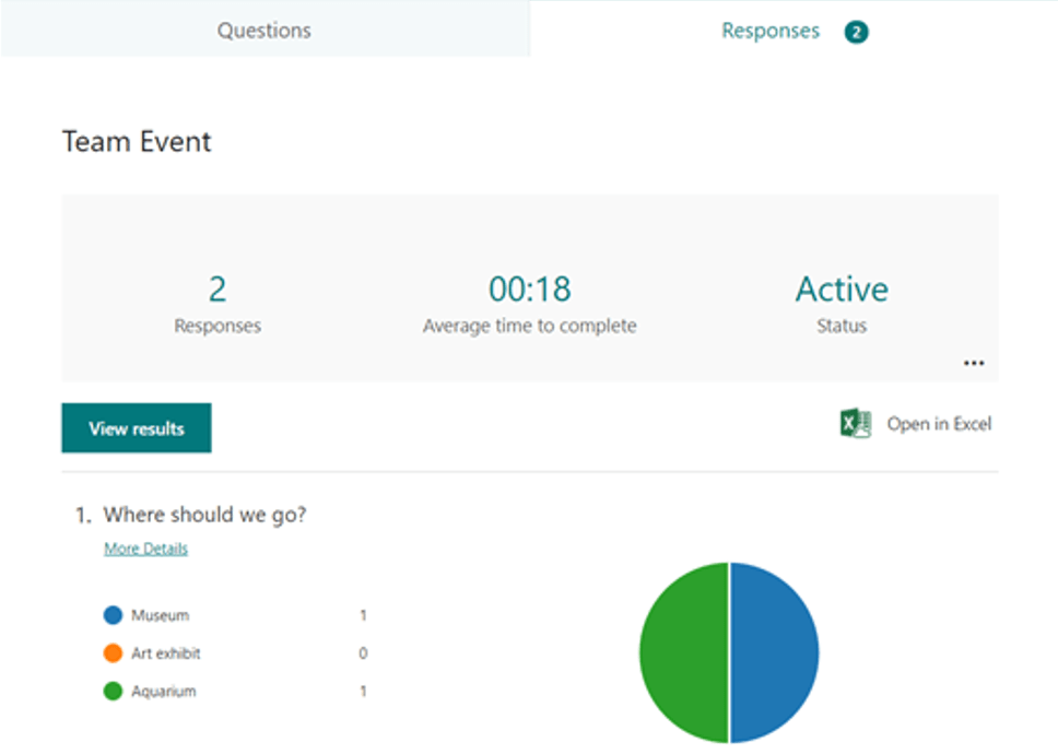 You can quickly see the results of the survey in meaningful graphs. Forms makes it simple to export to Excel if you want to upload the survey results into another platform.